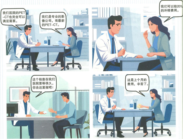 《九项准则》规定:“除因需要在医联体内正常转诊外,严禁以谋取个人利益为目的,经由网上或线下途径介绍、引导患者到指定医疗机构就诊。” 极个别医务人员为了蝇头小利,无视法律法规,将本单位诊疗的病人有偿转介到其他医疗机构或第三方检验机构就医,损害患者权益,破坏正常的诊疗秩序,涉嫌违规违纪甚至违法。
