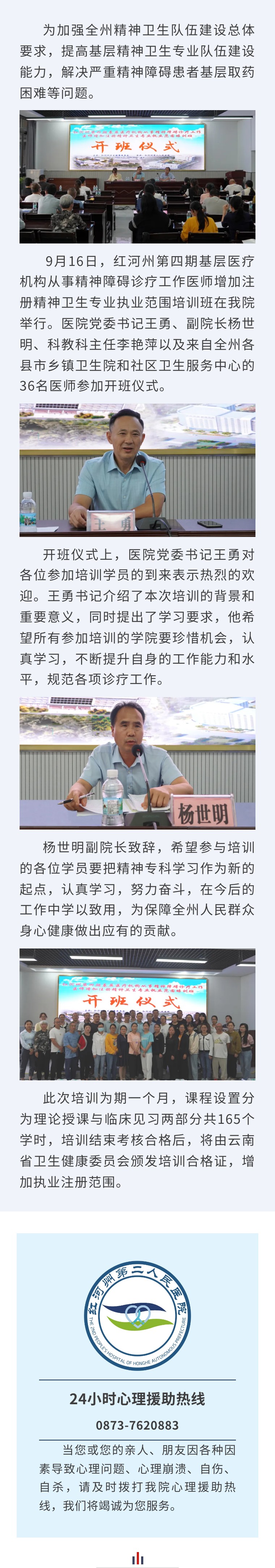 红河州第四期基层医疗机构从事精神障碍诊疗工作医师增加注册精神卫生专业执业范围培训班在我院举办