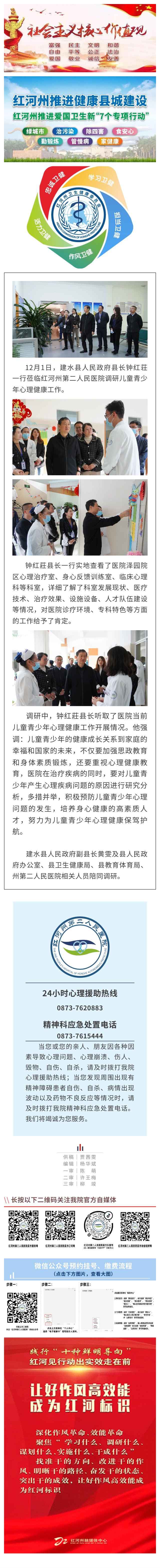 建水县人民政府县长钟红荘莅临红河州第二人民医院调研儿童青少年心理健康工作