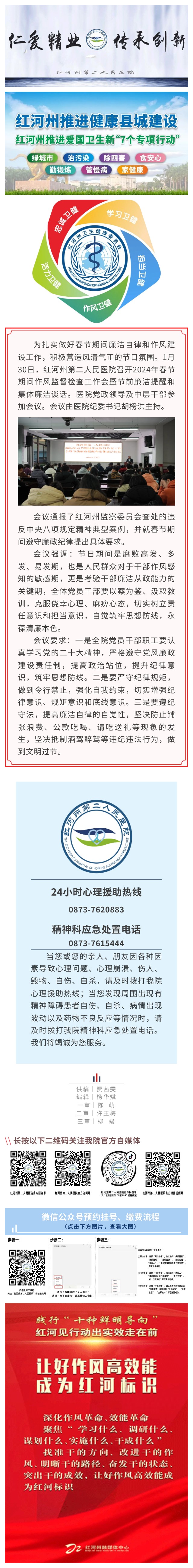 【作风卫健】红河州第二人民医院召开2024年春节期间作风监督检查工作会暨节前廉洁提醒和集体廉洁谈话