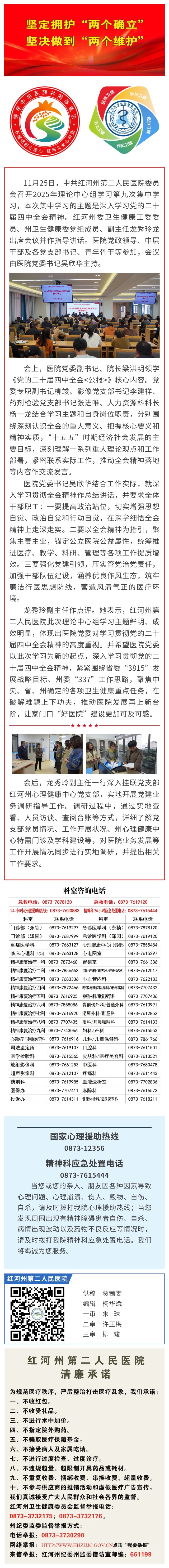红河州卫生健康委员会领导莅临红河州第二人民医院指导2025年理论中心组学习第九次集中学习