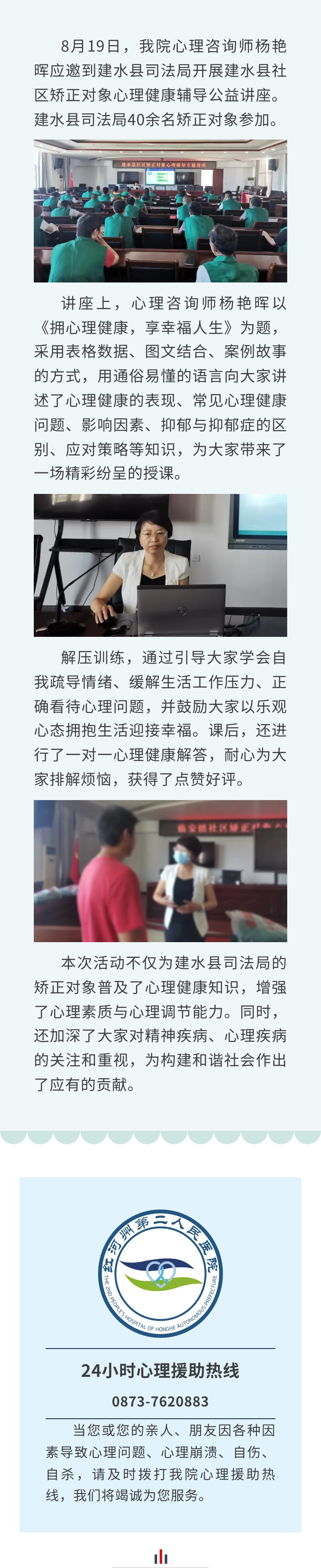 我为群众办实事|我院心理咨询师到建水县司法局开展心理健康公益讲座
