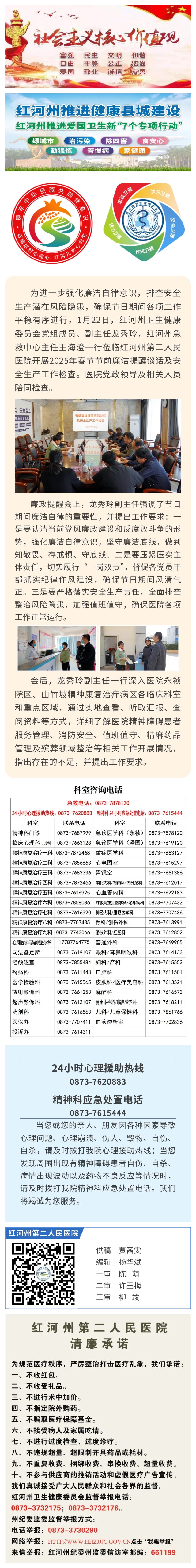【作风卫健】红河州卫生健康委员会领导莅临开展2025年春节节前廉洁提醒及安全生产工作检查