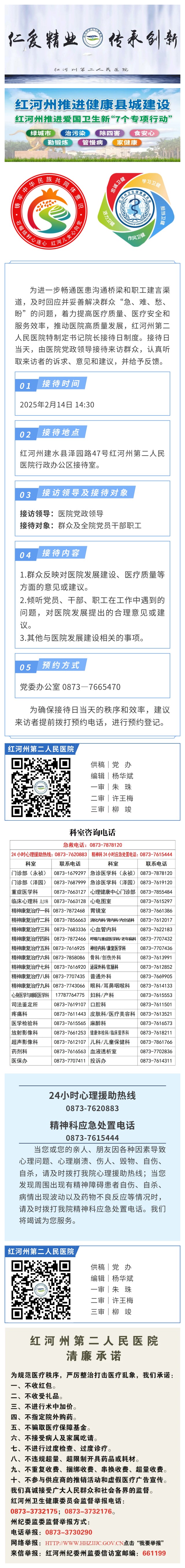 【书记院长接待日】红河州第二人民医院2025年2月书记院长接待日通告
