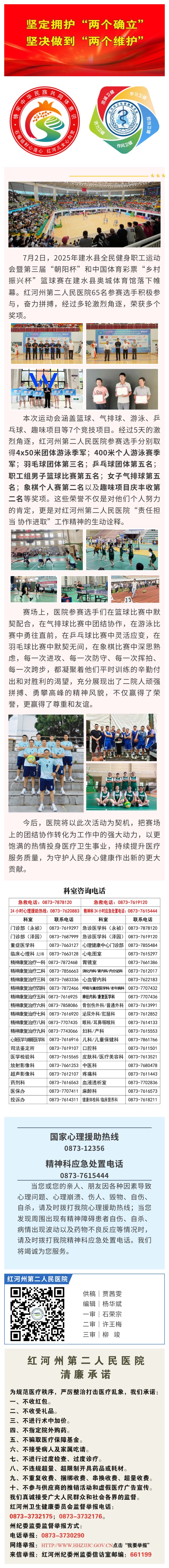 【喜讯】红河州第二人民医院在2025年建水县全民健身职工运动会暨第三届“朝阳杯”和中国体育彩票“乡村振兴杯”篮球赛中荣获佳绩